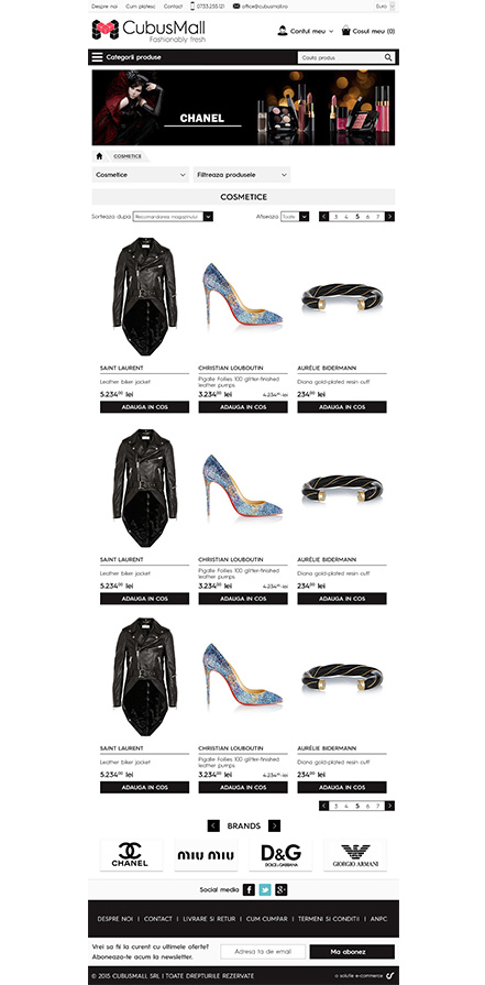 Magazinul online a fost realizat pe platforma ContentSpeed si beneficiaza de un design responsive, atractiv si elegant. Din punct de vedere al stocurilor Cubus Mall foloseste sistemul dropshipping. Magazinul este in limba engleza, iar metodele de plata integrate sunt variate. Acest proiect are setata optiunea “Multiple Currency” care permite plata in mai multe monede straine.