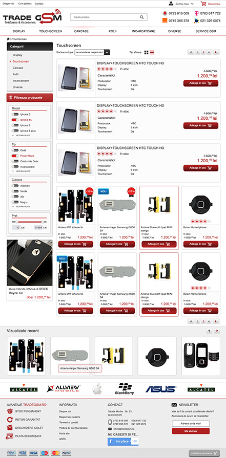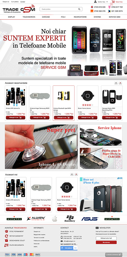 TradeGSM este o companie fondata in anul 1999, fiind printre primele retele de import si distributie de componente si piese de telefoane mobile din Romania. Oferta variata de produse alaturi de departamentul de service GSM, se bazeaza pe o echipa de specialisti cu experienta vasta in domeniu, capabili sa gaseasca cele mai bune solutii pentru problemele tehnice hardware pe care le intampinati.